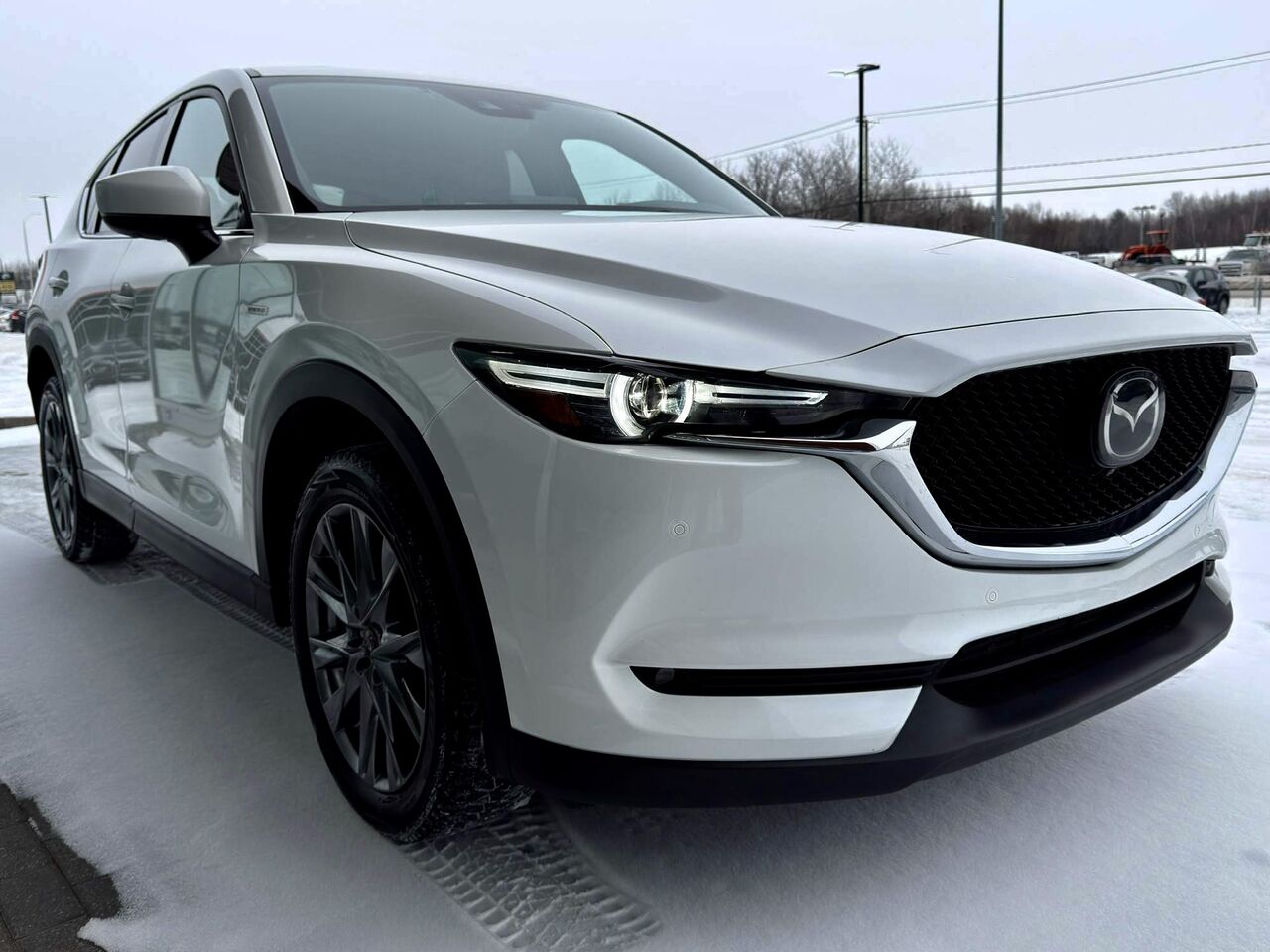 Treat yourself to a piece of history with this magnificent 2021 Mazda CX-5 100th Anniversary Edition. Clad in a brilliant metallic white finish, this exclusive model pays tribute to a century of Mazda innovation. It is instantly distinguishable by its unique commemorative badges on the front fenders and wheel center caps, proudly displaying its status as a modern collector's car.