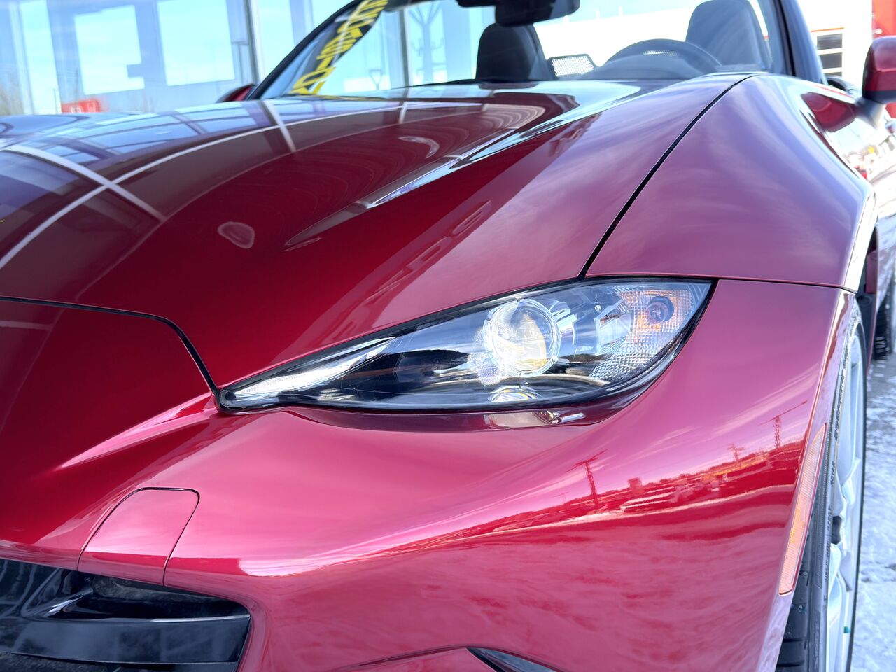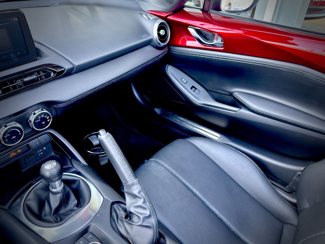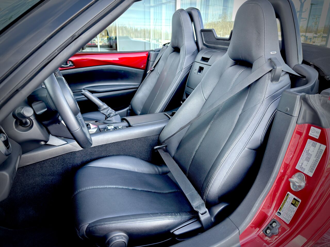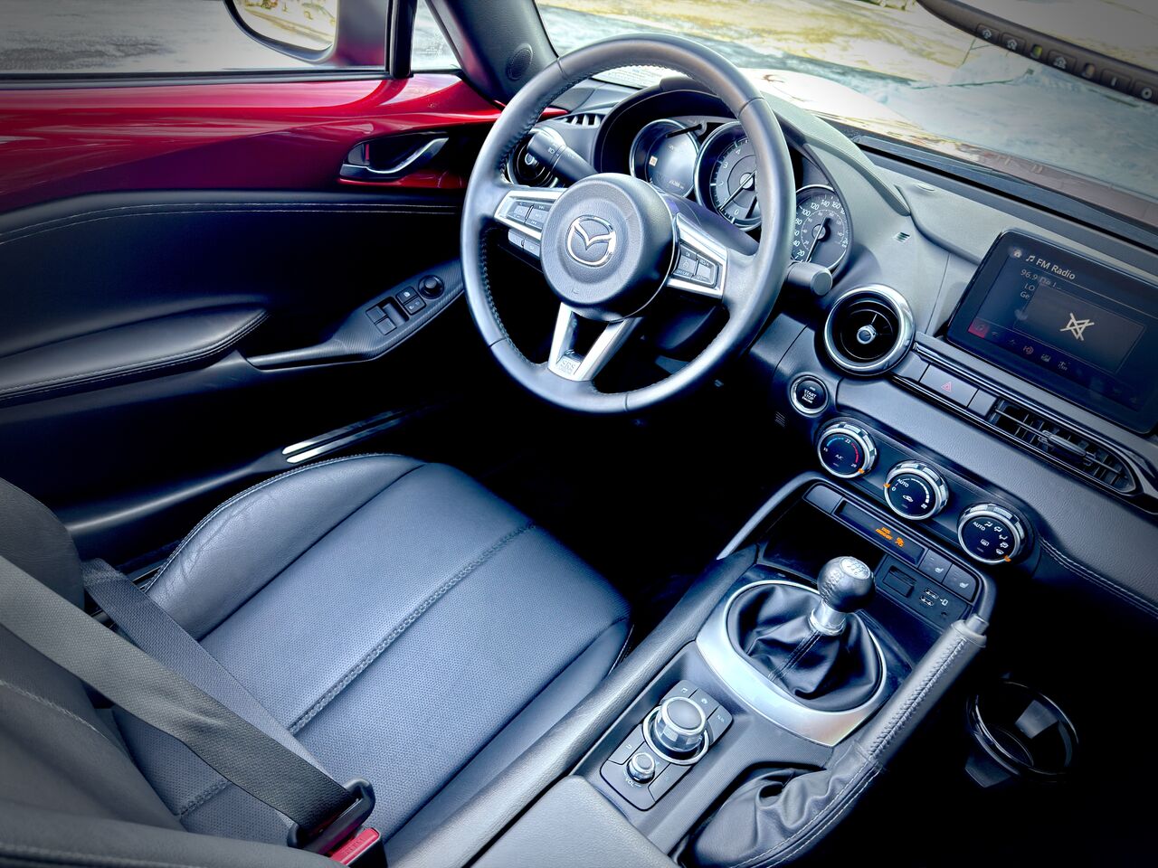 Inside, this two-seater surprises with refined comfort: leather heated seats, automatic climate control, push-button start, and elegant chrome and metallic touches. The stitched steering wheel and polished cockpit showcase Mazda’s passion for driver-focused design.
