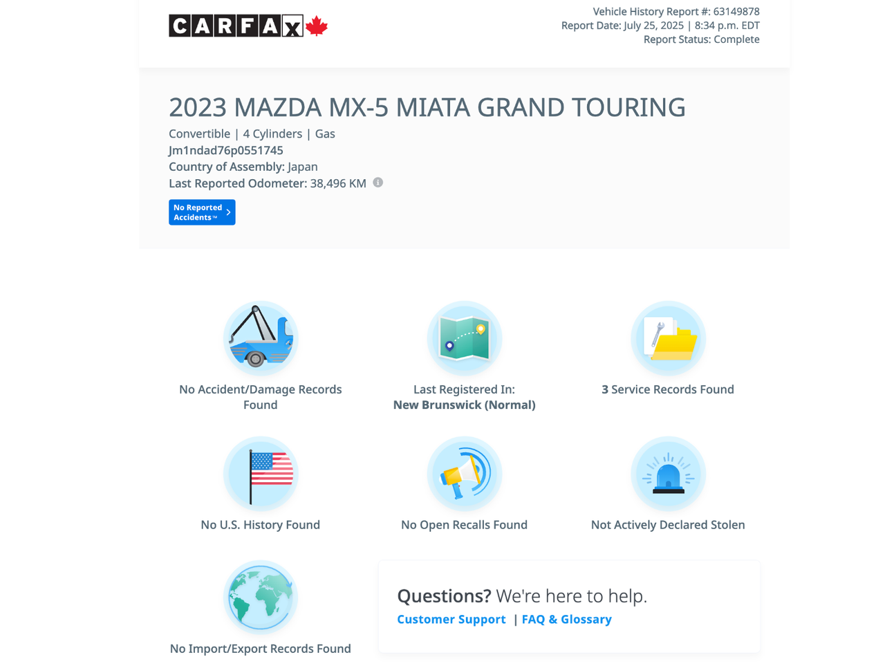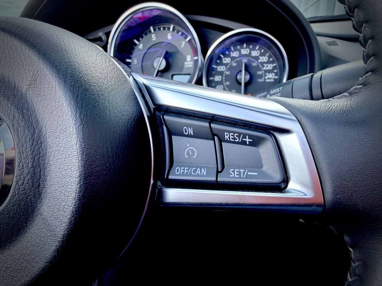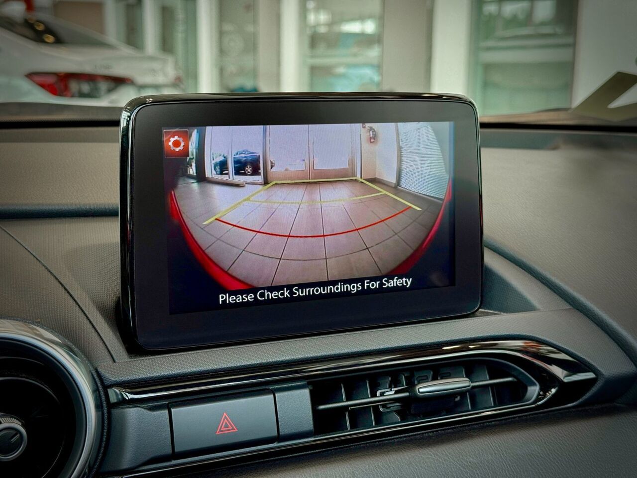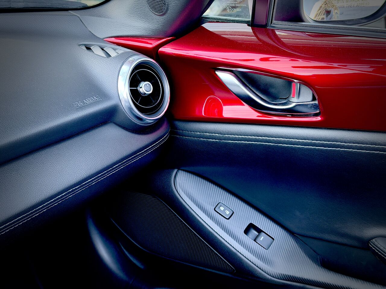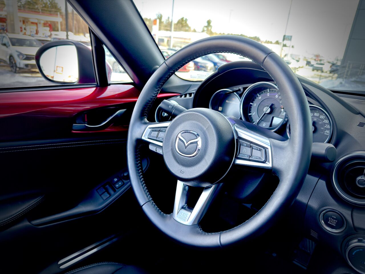 Inside, this two-seater surprises with refined comfort: leather heated seats, automatic climate control, push-button start, and elegant chrome and metallic touches. The stitched steering wheel and polished cockpit showcase Mazda’s passion for driver-focused design.