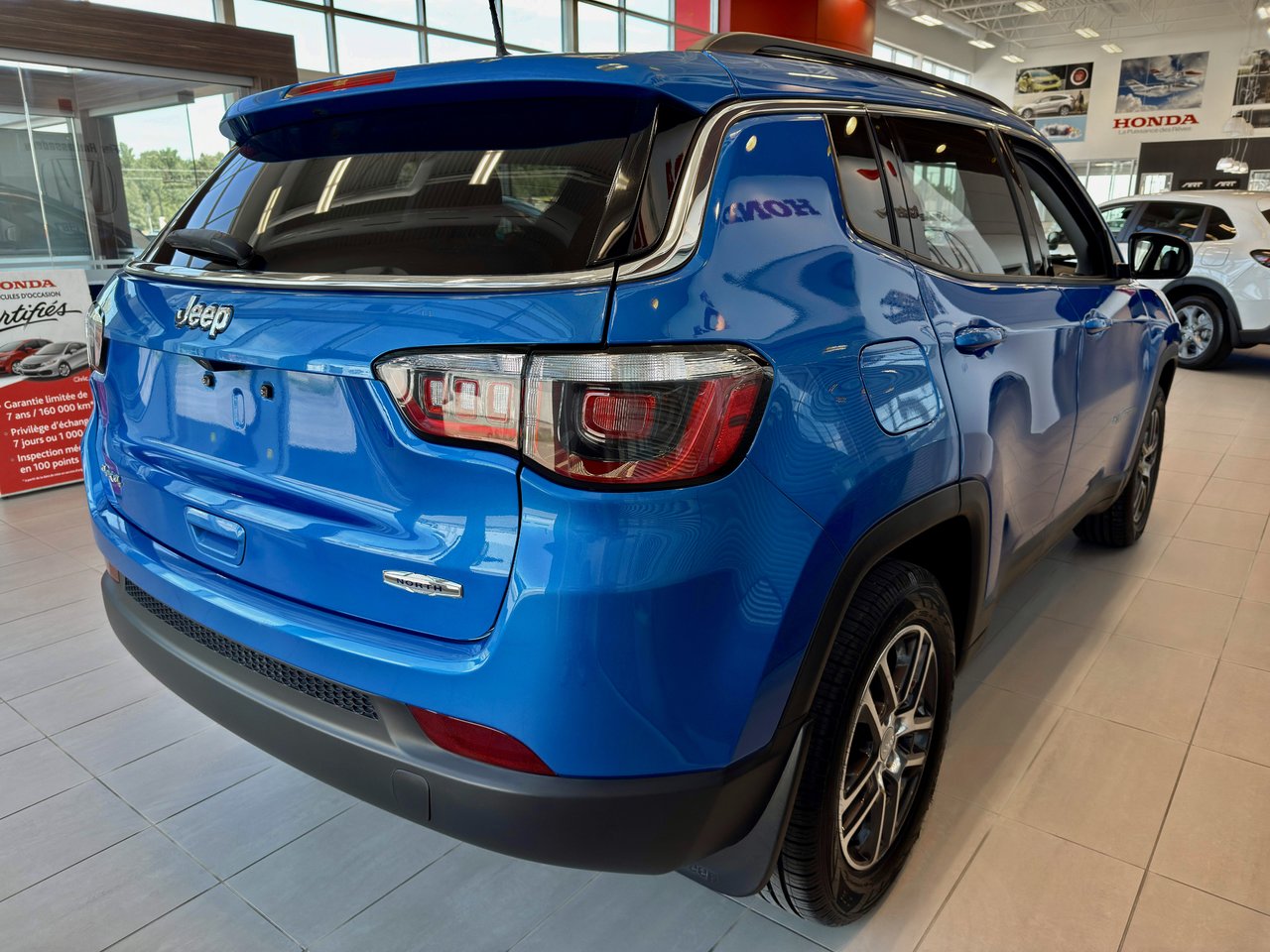 Jeep Compass North Edition 2018 : robuste, pratique et franchement attachant!   Avec ses 81 400 km, ce Compass en a encore long à offrir. Il mise sur un moteur 2,4 litres jumelé à une boîte automatique et à la traction intégrale pour affronter toutes les saisons avec aplomb. Grâce à son système de contrôle de stabilité et à ses suspensions calibrées pour le confort, il vous accompagne aussi bien en ville que sur les routes de campagne sans jamais broncher.   L’intérieur vous reçoit avec des sièges chauffants, une banquette arrière rabattable 60/40, la climatisation automatique, un régulateur de vitesse, un écran central de 8,4 pouces compatible Bluetooth et SiriusXM ainsi qu’un volant multifonction gainé de cuir. Le démarrage à distance et l’entrée sans clé vous facilitent le quotidien à tous les niveaux.   La caméra de recul, les phares automatiques, l’alerte de pression des pneus et les multiples coussins gonflables ajoutent une tranquillité d’esprit bienvenue à ce VUS polyvalent. Sans oublier ses roues de 17 pouces, ses longerons de toit noirs et ses accents extérieurs qui lui donnent une allure sportive discrète mais assumée.   C'est le temps de se gâter, venez donc le chercher!!! A votre service depuis plus de 35 ans. Au groupe St-jean, nous avons une vaste gamme de véhicules d'occasion. Venez-nous rencontrer pour faire un essai routier. Nous rachetons votre véhicule d'échange peu importe la marque. Financement sur place Toutes nos voitures sont inspectées et esthétiquement prêtes pour vous. Préparées par nos professionnels certifiés. Bien que nous ayons pris toutes les mesures raisonnables pour nous assurer de la précision des renseignements fournis, nous ne sommes pas responsables de toute erreur ou omission. Veuillez contre-vérifier les renseignements auprès d’un représentant. Selon les articles 159 et 160 de la loi sur la protection du consommateur, (1978, c.9) cette automobile fait partie de la catégorie ci-dessous et comporte une garantie de bon fonctionnement pour le temps ou le kilométrage indiqué ci-dessus, selon le premier terme atteint.