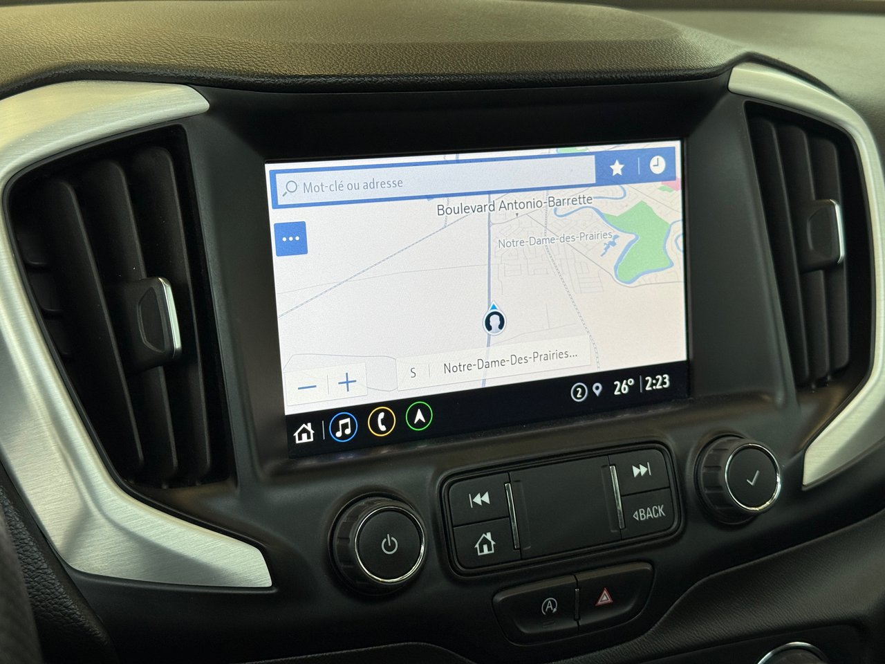 GMC Terrain SLE AWD 2022 – Un VUS compact qui joue dans la cour des grands! Style et Design Élégant Avec sa carrosserie Marine métallisé et ses lignes sculptées, le Terrain SLE 2022 ne se contente pas d’avoir l’air robuste : il l’est. Jantes en alliage de 17 pouces, phares à DEL, longerons de toit, hayon à commande électrique et rétroviseurs avec clignotants intégrés… c’est l’élégance pratique, signée GMC. Performance Revigorante Sous le capot, le moteur 1,5 litre turbo DACT jumelé à une boîte automatique 9 vitesses offre un bel équilibre entre puissance et économie. Grâce à la traction intégrale et au levier électronique de précision, vous profitez d’une tenue de route impeccable, même dans les pires conditions. Bonus : démarreur à distance pour les matins pressés. Raffinement Intérieur Bienvenue à bord : sièges avant chauffants, climatisation automatique bizone, grand écran tactile de 8 pouces avec navigation, commandes audio au volant, démarrage sans clé et soutien lombaire électrique. Le confort est au rendez-vous pour tous les passagers… même ceux qui prennent toujours trop de place. Connectivité Avancée Apple CarPlay, Android Auto, radio SiriusXM avec essai de 3 mois, point d’accès Wi-Fi 4G LTE, système audio haute qualité, 4 ports USB et interface OnStar : tout y est pour rester branché à la route et au reste du monde, peu importe la destination. Sécurité et Confiance Le Terrain ne fait pas de compromis sur la sécurité : freinage d’urgence automatique, alerte de collision frontale, alerte de trafic transversal, aide au maintien de voie, freinage piéton, phares IntelliBeam, sonar de recul et caméra HD. Même votre siège vous alerte si ça se complique. Bref, vous êtes entouré. C'est le temps de se gâter, venez donc le chercher!!! A votre service depuis plus de 35 ans. Au groupe St-jean, nous avons une vaste gamme de véhicules d'occasion. Venez-nous rencontrer pour faire un essai routier. Nous rachetons votre véhicule d'échange peu importe la marque. Financement sur place Toutes nos voitures sont inspectées et esthétiquement prêtes pour vous. Préparées par nos professionnels certifiés. Bien que nous ayons pris toutes les mesures raisonnables pour nous assurer de la précision des renseignements fournis, nous ne sommes pas responsables de toute erreur ou omission. Veuillez contre-vérifier les renseignements auprès d’un représentant. Selon les articles 159 et 160 de la loi sur la protection du consommateur, (1978, c.9) cette automobile fait partie de la catégorie ci-dessous et comporte une garantie de bon fonctionnement pour le temps ou le kilométrage indiqué ci-dessus, selon le premier terme atteint.