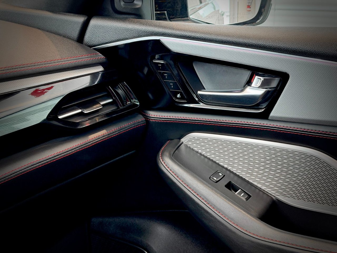 garniture intérieure -comprend : garniture de tableau de bord métallique, applique de panneau de porte métallique, applique de console noir piano/d'aspect métallique, contrastes intérieurs noir piano/d'aspect métallique et tableau de bord rembourré en cuir