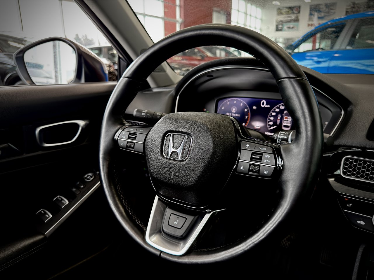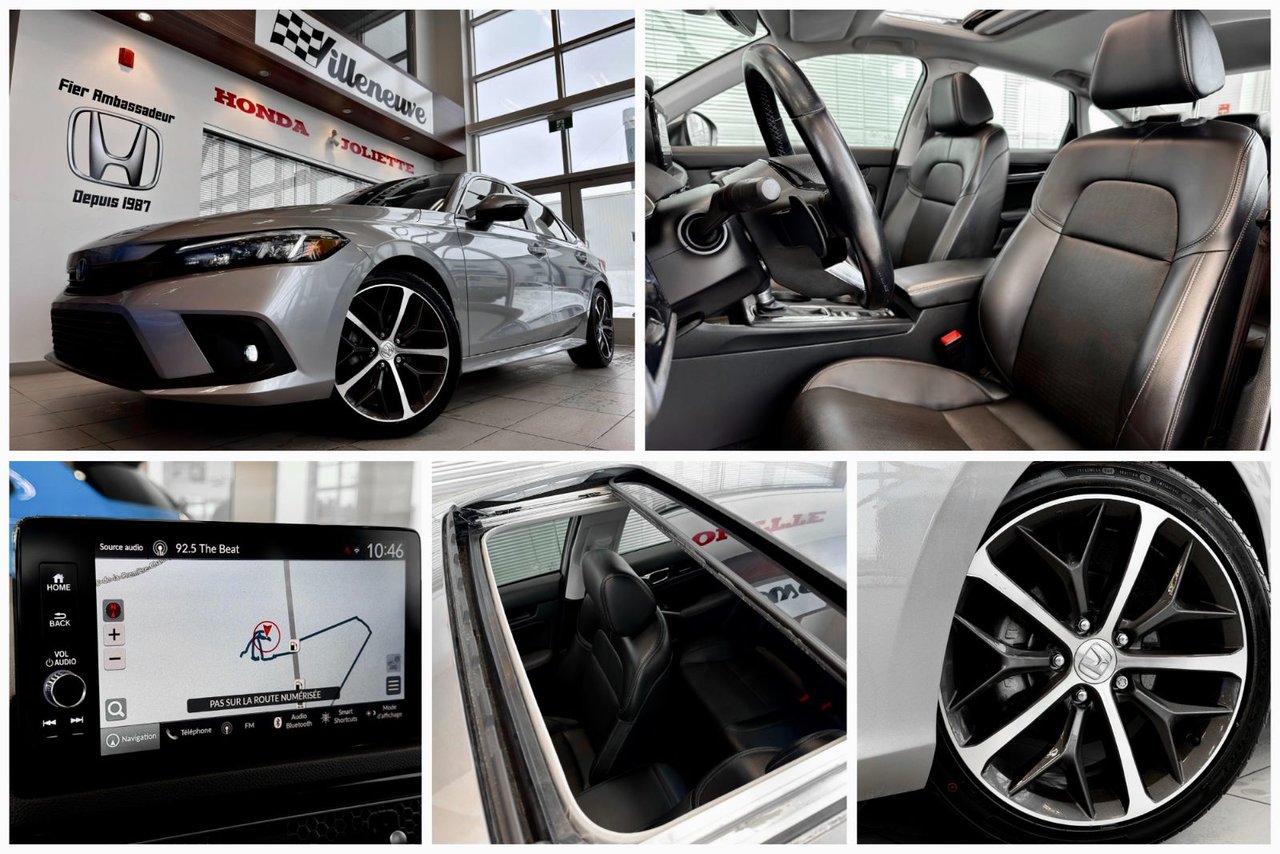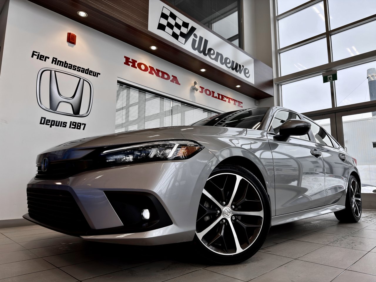L'Excellence Compacte Redéfinie Laissez-vous séduire par l'élégance intemporelle de cette Honda Civic Touring 2022 argent. Réputée pour sa fiabilité et son agrément de conduite, elle est propulsée par un moteur 4 cylindres turbocompressé de 1,5 L développant 180 chevaux. Jumelé à une transmission CVT performante, ce groupe motopropulseur offre une accélération vive et une économie de carburant remarquable, idéale pour vos trajets quotidiens comme pour vos escapades. L'extérieur raffiné de la Honda Civic Touring capte l'attention avec ses jantes en alliage de 18 pouces et ses phares antibrouillards à DEL. Le toit ouvrant électrique ajoute une touche de liberté, inondant l'habitacle de lumière naturelle. À l'intérieur, le confort atteint de nouveaux sommets. Installez-vous dans les sièges en cuir à réglage électrique et profitez d'une expérience sonore immersive grâce au système audio haut de gamme Bose à 12 haut-parleurs. L'écran tactile couleur de 9 pouces avec système de navigation intégré et la connectivité sans fil Apple CarPlay et Android Auto vous gardent connecté sans effort, tandis que le chargeur sans fil simplifie votre vie numérique. La sécurité est une priorité absolue avec la suite Honda Sensing complète, incluant le contrôle de freinage à basse vitesse et les capteurs d'aide au stationnement avant et arrière. Ce véhicule affiche 25 993 km au compteur. Passez nous voir chez Villeneuve Honda Joliette pour en faire l'essai dès aujourd'hui! A votre service depuis plus de 25 ans. Chez VILLENEUVE HONDA JOLIETTE, nous avons une vaste gamme de véhicules d'occasion, dont de nombreuses voitures CERTIFIÉES HONDA. Venez-nous rencontrer pour faire un essai routier. Nous rachetons votre véhicule d'échange peu importe la marque. Financement sur place Toutes nos voitures sont inspectées et esthétiquement prêtes pour vous. Préparées par nos professionnels certifiés. Villeneuve Honda Joliette 570 ROUTE 131, NOTRE-DAMES DES PRAIRIES, QUEBEC, J6E 0M2 https://www.villeneuvehondajoliette.com/fr Bien que nous ayons pris toutes les mesures raisonnables pour nous assurer de la précision des renseignements fournis, nous ne sommes pas responsables de toute erreur ou omission. Veuillez contre-vérifier les renseignements auprès d’un représentant. DESOLE AUCUN WHOLESALE / SORRY NO WHOLESALE