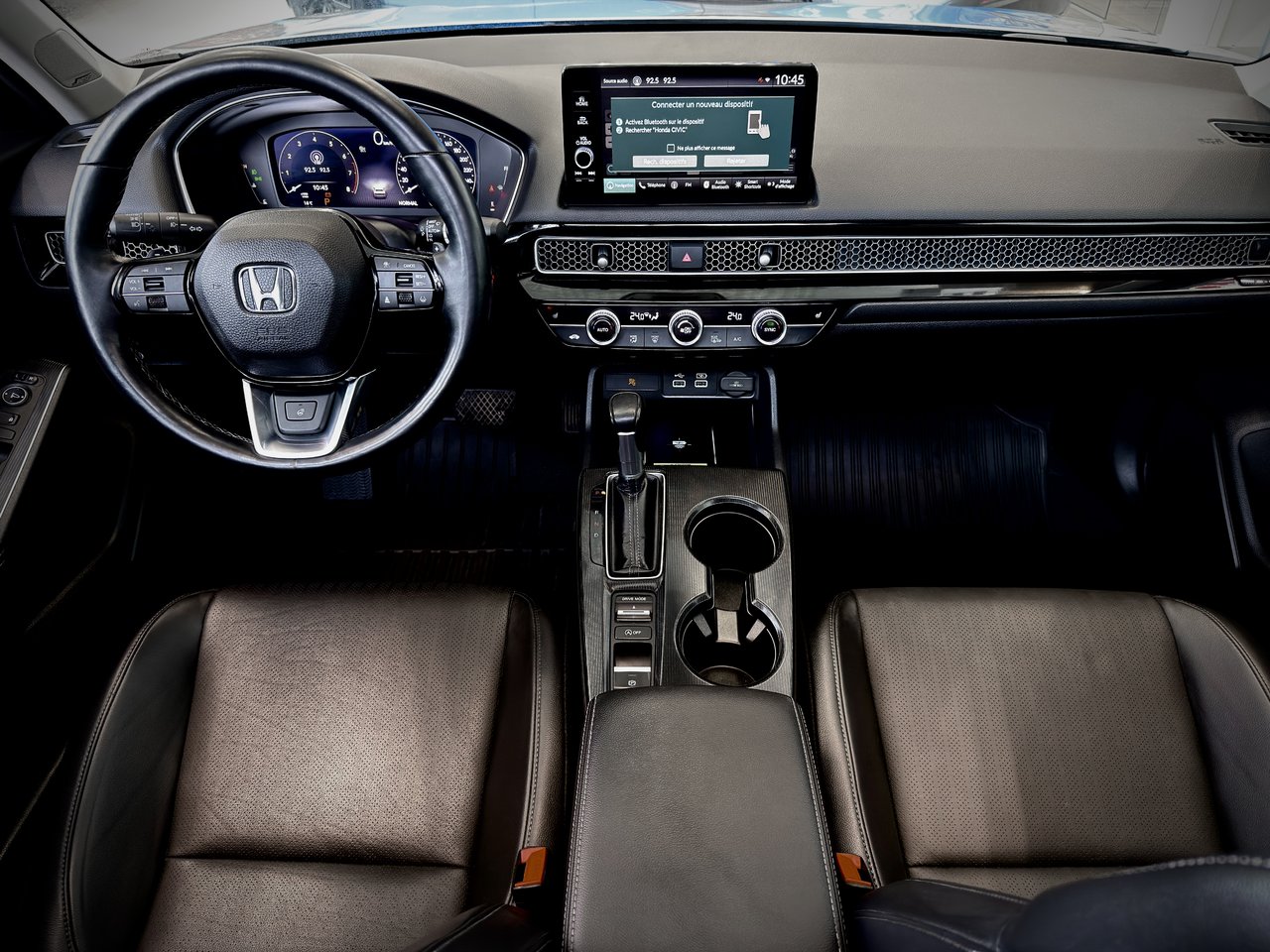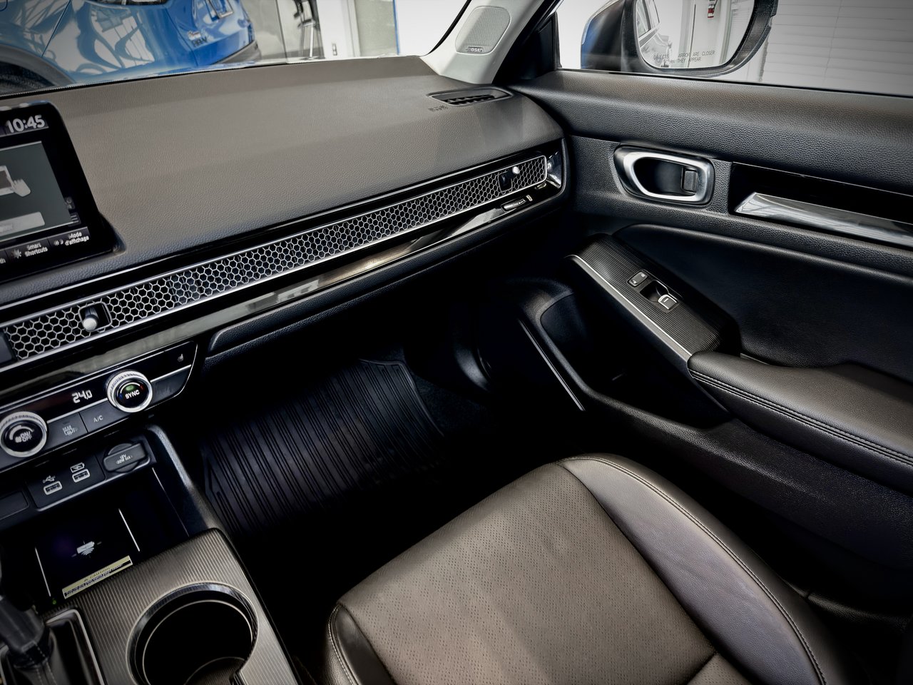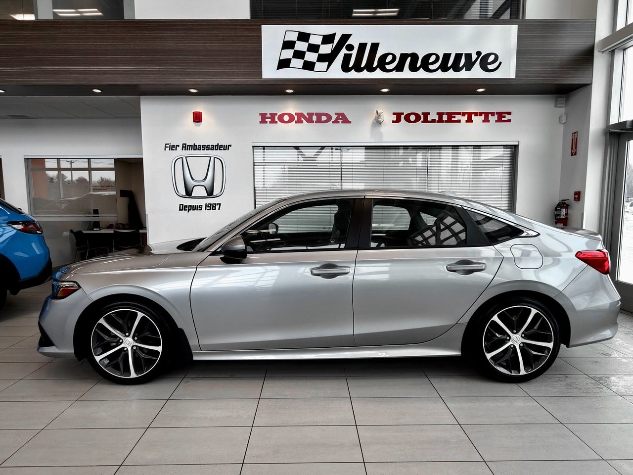 L'Excellence Compacte Redéfinie Laissez-vous séduire par l'élégance intemporelle de cette Honda Civic Touring 2022 argent. Réputée pour sa fiabilité et son agrément de conduite, elle est propulsée par un moteur 4 cylindres turbocompressé de 1,5 L développant 180 chevaux. Jumelé à une transmission CVT performante, ce groupe motopropulseur offre une accélération vive et une économie de carburant remarquable, idéale pour vos trajets quotidiens comme pour vos escapades. L'extérieur raffiné de la Honda Civic Touring capte l'attention avec ses jantes en alliage de 18 pouces et ses phares antibrouillards à DEL. Le toit ouvrant électrique ajoute une touche de liberté, inondant l'habitacle de lumière naturelle. À l'intérieur, le confort atteint de nouveaux sommets. Installez-vous dans les sièges en cuir à réglage électrique et profitez d'une expérience sonore immersive grâce au système audio haut de gamme Bose à 12 haut-parleurs. L'écran tactile couleur de 9 pouces avec système de navigation intégré et la connectivité sans fil Apple CarPlay et Android Auto vous gardent connecté sans effort, tandis que le chargeur sans fil simplifie votre vie numérique. La sécurité est une priorité absolue avec la suite Honda Sensing complète, incluant le contrôle de freinage à basse vitesse et les capteurs d'aide au stationnement avant et arrière. Ce véhicule affiche 25 993 km au compteur. Passez nous voir chez Villeneuve Honda Joliette pour en faire l'essai dès aujourd'hui! A votre service depuis plus de 25 ans. Chez VILLENEUVE HONDA JOLIETTE, nous avons une vaste gamme de véhicules d'occasion, dont de nombreuses voitures CERTIFIÉES HONDA. Venez-nous rencontrer pour faire un essai routier. Nous rachetons votre véhicule d'échange peu importe la marque. Financement sur place Toutes nos voitures sont inspectées et esthétiquement prêtes pour vous. Préparées par nos professionnels certifiés. Villeneuve Honda Joliette 570 ROUTE 131, NOTRE-DAMES DES PRAIRIES, QUEBEC, J6E 0M2 https://www.villeneuvehondajoliette.com/fr Bien que nous ayons pris toutes les mesures raisonnables pour nous assurer de la précision des renseignements fournis, nous ne sommes pas responsables de toute erreur ou omission. Veuillez contre-vérifier les renseignements auprès d’un représentant. DESOLE AUCUN WHOLESALE / SORRY NO WHOLESALE