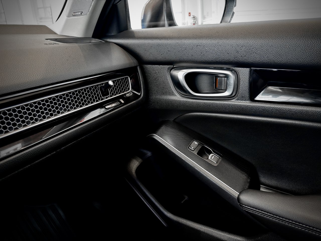 garniture intérieure -comprend : garniture de tableau de bord noir piano/d'aspect métallique, applique de panneau de porte noir piano/d'aspect métallique, applique de console métallique et contrastes intérieurs noir piano/d'aspect métallique