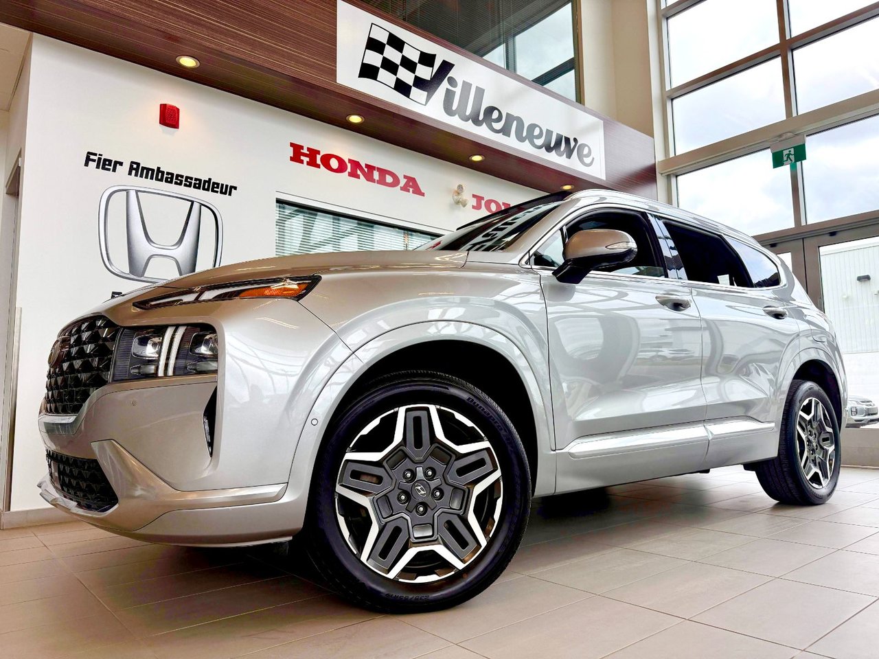 Hyundai Santa Fe Ultimate Calligraphy 2021 – Le luxe sur quatre roues… et quatre saisons Style et Design Élégant Avec sa silhouette sculptée, sa calandre chromée et ses jantes raffinées (non mentionnées, mais on devine qu’elles sont stylées), le Santa Fe Calligraphy attire les regards sans hausser le ton. La peinture argentée et les accents métalliques ajoutent une touche de raffinement digne d’une berline de luxe, mais dans un format familial pratique. Performance Revigorante Sous le capot, un moteur turbo de 2,5 litres développe 277 chevaux de pur aplomb. Grâce à une boîte automatique à 8 rapports et à la traction intégrale automatique, vous affrontez la neige, la pluie ou les virages serrés sans sourciller. Le système Drive Mode Select vous permet même de choisir le style de conduite selon votre humeur. Raffinement Intérieur Bienvenue dans un salon roulant avec sièges en cuir Nappa, climatisation automatique bi-zone, affichage tête haute et mémoire pour les rétroviseurs. Le confort est pensé dans les moindres détails, jusqu’aux conduits de ventilation pour les passagers arrière. On parle ici d’un habitacle aussi paisible qu’une séance de spa (mais avec Bluetooth). Connectivité Avancée Un écran tactile de 10,2 pouces, 12 haut-parleurs Harman/Kardon, navigation intégrée, Android Auto, Apple CarPlay, commande vocale, 4 ports USB, BlueLink… bref, une panoplie techno pour rester connecté, diverti et zen, même dans le trafic du matin. Polyvalence Redoutable Avec ses sièges arrière rabattables, son hayon assisté, ses barres de toit, sa conduite équilibrée et ses nombreuses assistances à la conduite (freinage d’urgence, maintien de voie, régulateur adaptatif), c’est un VUS qui n’a pas peur des aventures familiales — ni de la file de Tim Hortons. Financement Facile et Livraison Rapide Disponible maintenant chez Joliette Volkswagen, ce Santa Fe Ultimate Calligraphy 2021 argent est offert à partir de paiements abordables avec 0 $ comptant. Chic, pratique, efficace — c’est le trio gagnant. A votre service depuis plus de 25 ans. Chez VILLENEUVE HONDA JOLIETTE, nous avons une vaste gamme de véhicules d'occasion, dont de nombreuses voitures CERTIFIÉES HONDA. Venez-nous rencontrer pour faire un essai routier. Nous rachetons votre véhicule d'échange peu importe la marque. Financement sur place Toutes nos voitures sont inspectées et esthétiquement prêtes pour vous. Préparées par nos professionnels certifiés. Villeneuve Honda Joliette 570 ROUTE 131, NOTRE-DAMES DES PRAIRIES, QUEBEC, J6E 0M2 https://www.villeneuvehondajoliette.com/fr Bien que nous ayons pris toutes les mesures raisonnables pour nous assurer de la précision des renseignements fournis, nous ne sommes pas responsables de toute erreur ou omission. Veuillez contre-vérifier les renseignements auprès d’un représentant. DESOLE AUCUN WHOLESALE / SORRY NO WHOLESALE Selon les articles 159 et 160 de la loi sur la protection du consommateur, (1978, c.9) cette automobile fait partie de la catégorie ci-dessous et comporte une garantie de bon fonctionnement pour le temps ou le kilométrage indiqué ci-dessus, selon le premier terme atteint.