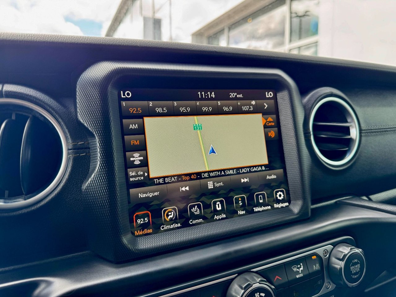 radio avec recherche et balayage, montre, volume asservi à la vitesse, prise d'entrée audio auxiliaire, commandes au volant, commandes vocales, système de radiocommunication de données et commande de mémoire externe uconnect