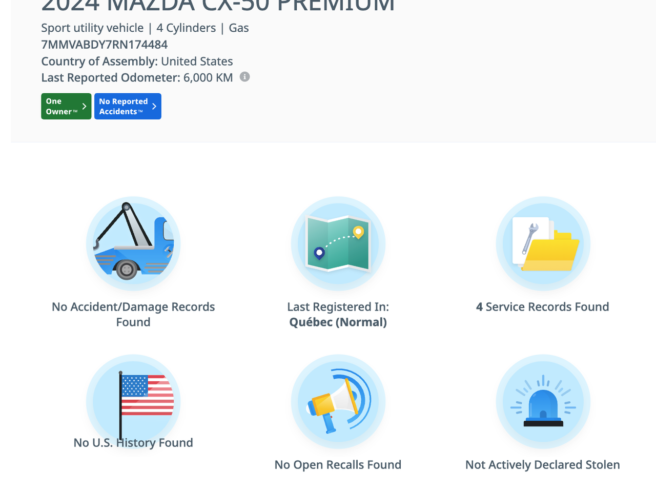 ▼Les services de véhicule connecté sont offerts pour une période d’essai de deux ans à partir de la date de mise en service de votre véhicule; un abonnement payant est requis à l’expiration de la période d’essai. Offerts pour les modèles MX-30, Mazda3, Mazda3 Sport, CX-5, CX-9, CX-30, CX-50, CX-90 et CX-70. Nécessite l’application MyMazda (sur un téléphone intelligent compatible), un système électrique de véhicule en bonne condition (y compris la batterie), une couverture sans fil et un signal satellite GPS. Les services, la connectivité et les capacités varient selon les conditions ainsi que les restrictions géographiques et techniques. Visitez mazda.ca pour plus de détails. Note : Le démarrage à distance n’est pas offert sur le CX-90 hybride rechargeable et le CX-70 Hybride rechargeable. Consultez mazda.ca pour les détails. ▲ La prime d’événement de 500 $/ $/1 000 $/ 4 000 $ (« Boni ») est offerte pour les modèles CX-30 2025, CX-5 2025/ CX-90 MHEV 2025, CX-70 MHEV 2025/CX-90 PHEV 2025, CX-70 PHEV 2025 neufs et non enregistrés qui sont achetés ou financés/loués (sur approbation de crédit) et livrés entre le 1er et le 31 octobre 2025 par un détaillant autorisé Mazda au Canada. La prime sera appliquée au prix de vente négocié du véhicule admissible avant les taxes et : (i) n’a aucune valeur de rachat ou d’autre valeur; et (ii) ne peut pas être appliquée aux transactions antérieures. Des conditions s’appliquent. Consultez mazda.ca ou votre détaillant Mazda local pour plus de détails. ▲▲ Profitez d’un boni supplémentaire à l’achat d’un plan de Protection étendue Mazda lors de l’achat d’un modèle neuf et non immatriculé entre le 1er et le 31 octobre, comme suit : (i) Boni de 1 000 $ : CX-70 2025, CX-90 2025. Le boni sera appliqué au prix d’achat du plan de Protection étendue Mazda avant taxes et : (i) n’a aucune valeur de rachat en espèces ni autre valeur; (ii) ne peut être appliqué aux véhicules de parc automobile; et (iii) ne peut être appliqué aux transactions antérieures. Des conditions s’appliquent. Consultez Mazda.ca ou votre détaillant Mazda local pour plus de détails. ◆◆ CX-70 PHEV et CX-90 PHEV: Seuls les résidents du Québec sont admissibles, sous réserve des conditions l’éligibilité du programme « Roulez vert ». L’incitatif du programme « Roulez Vert » du gouvernement du Québec est offert aux résidents admissibles du Québec à l’achat ou à la location d’un véhicule électrique neuf admissible jusqu’à la fin du programme, ou jusqu’à l’épuisement des fonds disponibles (selon la première éventualité). Le rabais gouvernemental allant jusqu’à 2 000 $ sur les véhicules électriques est offert aux résidents admissibles du Québec à l’achat ou à la location (48 mois ou plus) d’un véhicule hybride rechargeable Mazda CX-70 2025 (GS-L et GT seulement) ou CX-90 2025 (GS, GS-L et GT seulement) neuf et non immatriculé auprès d’un détaillant Mazda participant au Québec et livré avant le 31 octobre 2025. Le montant de l’incitatif « Roulez Vert » sera réduit à 1 000 $ à compter du 1er janvier 2026. Le montant de l’incitatif varie en fonction (entre autres) de la durée de la période de location et des dates d’achat/location, et sera déduit du prix de vente négocié du véhicule admissible après taxes. Seule une location de 48 mois ou plus permet d’obtenir le rabais maximal. L’incitatif est administré par le gouvernement du Québec et peut être modifié ou résilié sans préavis. Mazda Canada n’est pas responsable des changements apportés au programme d’incitatifs gouvernemental et ne fait aucune déclaration quant au montant réel de celui-ci ou à l’admissibilité à un incitatif gouvernemental. Les informations sur les incitatifs sont fournies à titre indicatif uniquement et peuvent être modifiées. Des conditions, des restrictions et des critères d’admissibilité s’appliquent; ce ne sont pas tous les clients qui seront admissibles. Pour plus de détails ou pour déterminer si vous êtes admissible, visitez https://www.quebec.ca/transports/transport-electrique/aide-financiere-vehicule-electrique/programme-roulez-vert †† Les spécifications et caractéristiques, y compris le type de moteur et l’économie d’essence, ne sont pas nécessairement les mêmes pour toutes les versions des véhicules. Pour tous les détails au sujet des spécifications et caractéristiques des véhicules, veuillez visiter les pages consacrées à ceux-ci sur mazda.ca ou communiquez avec votre concessionnaire Mazda. *Veuillez consulter mazdaillimitee.ca pour tous les détails. Certaines limites s’appliquent. Le temps froid diminue la durée de vie de la batterie. Consultez mazda.ca pour plus d’information. ■ Offre de financement d’une durée limitée offerte par les services financiers Mazda sur approbation de crédit. Offre de financement représentative basée sur un modèle CX-90 MHEV SIGNATURE 2025 (WXKG85 AA00) neuf et non enregistré. Le prix du véhicule est de 66 847,35 $. Financement APR de 1,95 % pour 36 mois. Le versement mensuel est de 1 913,22 $, ce qui comprend : 2 195 $ pour le transport et la vérification de prélivraison (PDI); 100 $ pour les frais de climatisation ; frais réglementaires (jusqu’à 12,50 $); frais administratifs du détaillant (jusqu’à 795 $); frais d’enregistrement de privilège (jusqu’à 58,85 $, y compris les frais d’agent d’enregistrement de privilège); ainsi que tous les autres frais, prélèvements et droits applicables (qui peuvent tous varier selon la région et le détaillant). 36 versements mensuels requis. Le permis, l’assurance, l’immatriculation et les taxes applicables sont en sus. Un acompte de 0 $ ou une reprise équivalente est requis. Le coût d’emprunt est de 2 028,63 $ pour une obligation totale de 68 875,98 $. Le détaillant peut vendre à pr