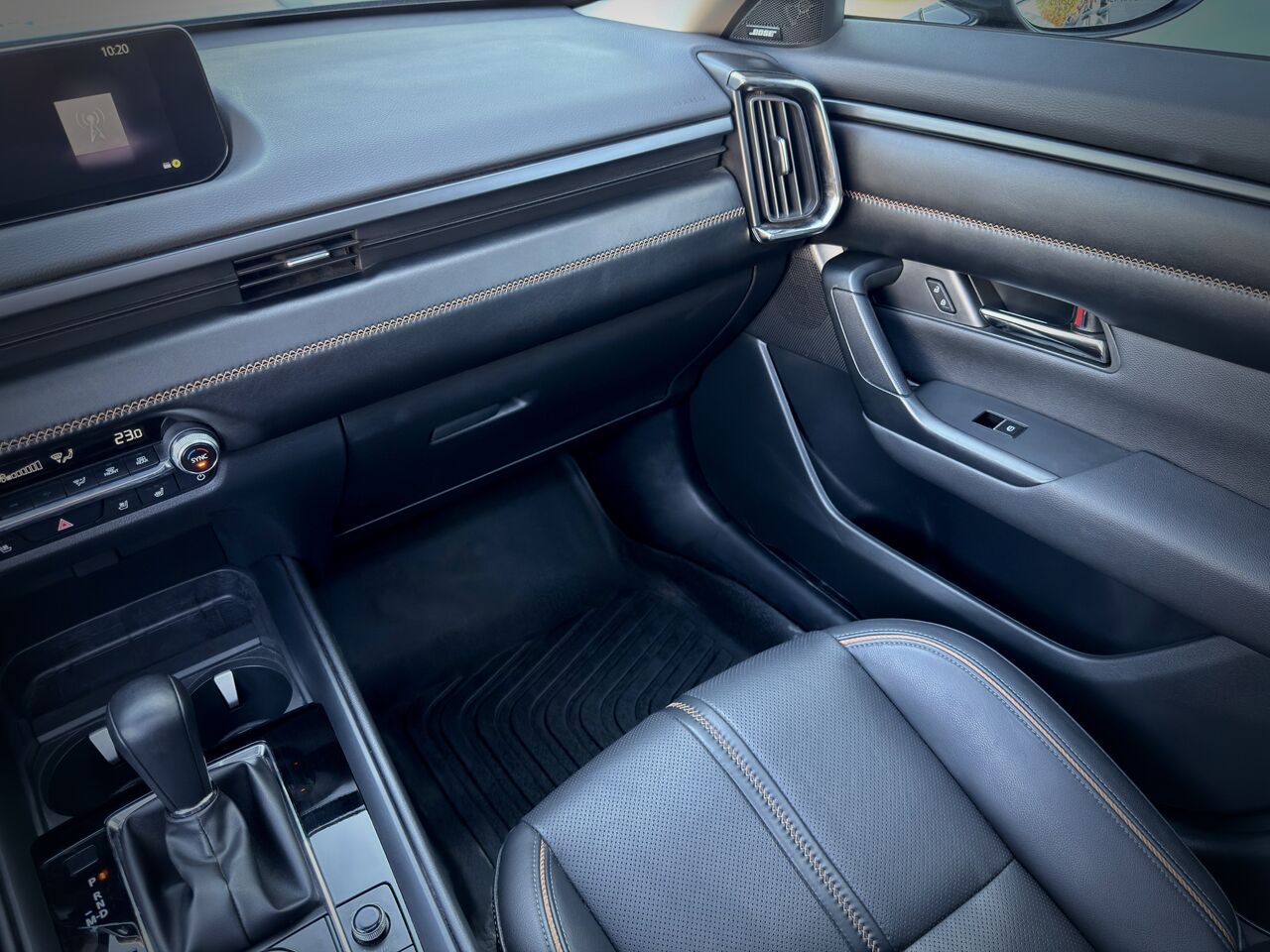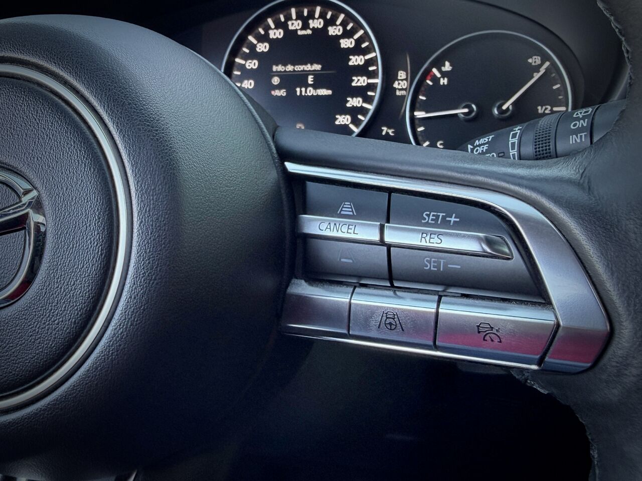 À bord, le confort et la sophistication sont de mise : sièges chauffants ventilés, volant chauffant, toit ouvrant panoramique, affichage tête haute, caméra à 360°, système Mazda Connect avec écran et connectivité complète. Chaque trajet devient une expérience connectée.