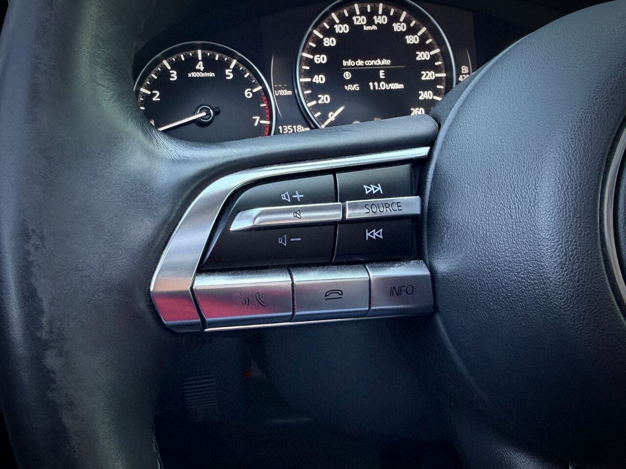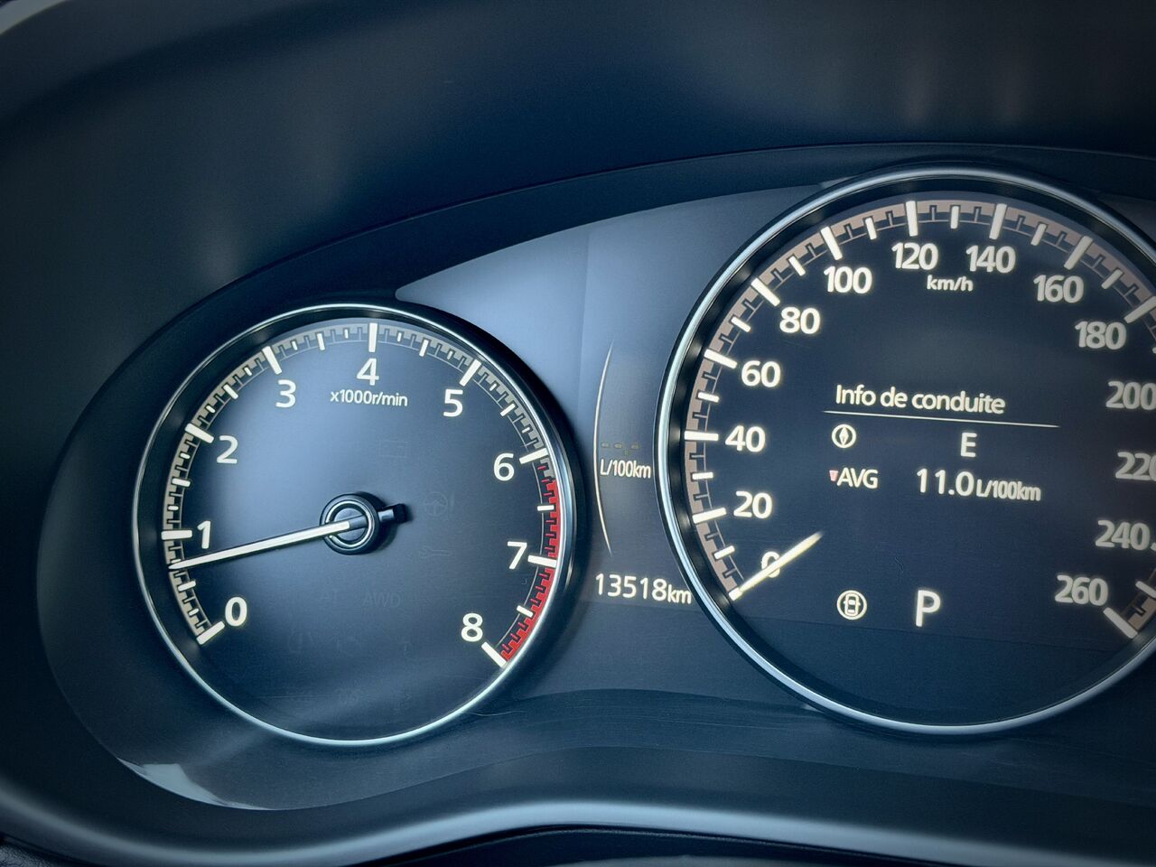 Le moteur 2,5 L SKYACTIV-G turbocompressé développe 256 chevaux (320 lb-pi de couple en mode premium) et est couplé à une transmission automatique 6 vitesses et à un système AWD de série. Cette configuration garantit une accélération vive, une traction sûre et une tenue de route engageante dans toutes les conditions.