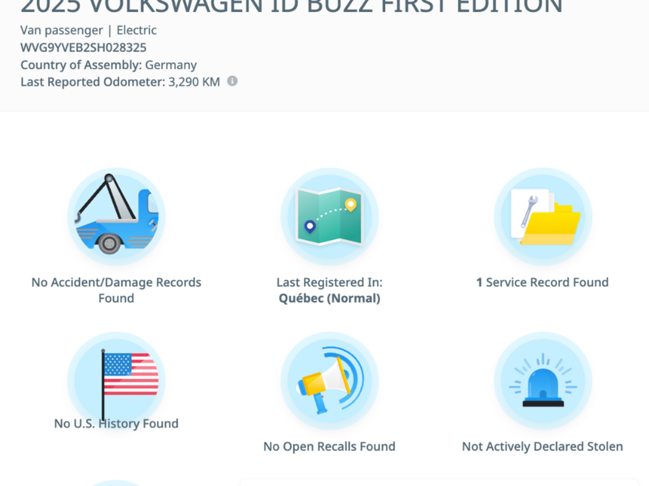 L'Icône Réinventée en Version Électrique Laissez-vous charmer par ce Volkswagen ID. Buzz First Edition 2025 bleu, une véritable fusion entre nostalgie et futurisme. Avec son design unique et son moteur électrique développant une puissance combinée de 335 chevaux, il offre une autonomie de 372 km et une conduite silencieuse, le tout supporté par la traction intégrale 4MOTION pour une stabilité exemplaire. L'extérieur captivant de ce Volkswagen ID. Buzz First Edition est monté sur des jantes de 20 pouces exclusives. Le toit panoramique en option inonde l'habitacle de lumière, tandis que les phares à DEL assurent une visibilité optimale. Le hayon électrique et l'accès sans clé ajoutent une touche de commodité à votre quotidien. L'intérieur spacieux pour 6 passagers est un havre de confort technologique. Profitez de sièges avant ventilés et chauffants, d'un volant chauffant et de sièges arrière chauffants. Le système multimédia avec grand écran tactile intègre le GPS, Apple CarPlay et Android Auto sans fil, ainsi qu'un système audio haut de gamme pour vos trajets. La sécurité est à la fine pointe avec l'affichage tête-haute, la caméra 360 degrés et la suite complète d'aides à la conduite incluant le régulateur de vitesse adaptatif et la détection d'angles morts. Ce véhicule affiche seulement 7 900 km au compteur. Passez nous voir chez Joliette Volkswagen pour en faire l'essai dès aujourd'hui! Nous avons fait l'inspection complète, AUCUN INVESTISSEMENT À FAIRE car tout est fait, facture à l'appui. Nous offrons aussi le FINANCEMENT 1-2-3 ÈME CHANCE AU CRÉDIT. Chez Joliette Volkswagen nous acceptons toutes les marques en échange, Bateau, Motorisé, Motoneige et Roulotte... *** Chez JOLIETTE VOLKSWAGEN DIVISION OCCASION, Votre concessionnaire de LANAUDIERE À 30 MIN DE MONTRÉAL ; Notre Mission, faire de votre expérience d'achat de votre véhicule neuf ou d'occasion, l'endroit numéro 1 dans Lanaudière DEPUIS 25 ANS, VENEZ MAINTENANT NOUS RENCONTRER !!! Bien que nous ayons pris toutes les mesures raisonnables pour nous assurer de la précision des renseignements fournis, nous ne sommes pas responsables de toute erreur ou omission. Veuillez contre-vérifier les renseignements auprès d’un représentant. Selon les articles 159 et 160 de la loi sur la protection du consommateur, (1978, c.9) cette automobile fait partie de la catégorie ci-dessous et comporte une garantie de bon fonctionnement pour le temps ou le kilométrage indiqué ci-dessus, selon le premier terme atteint.