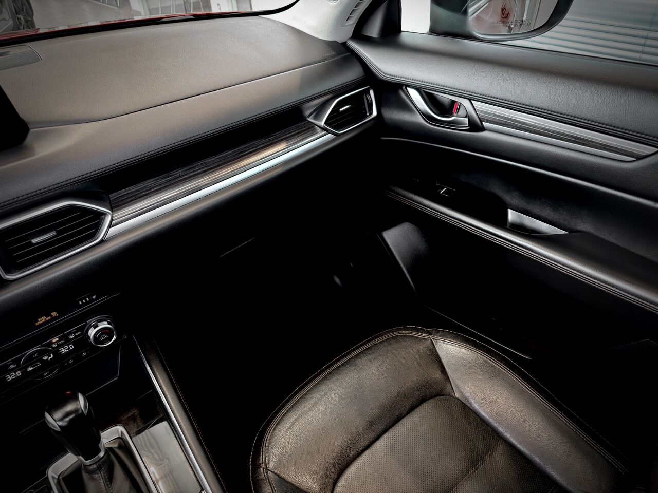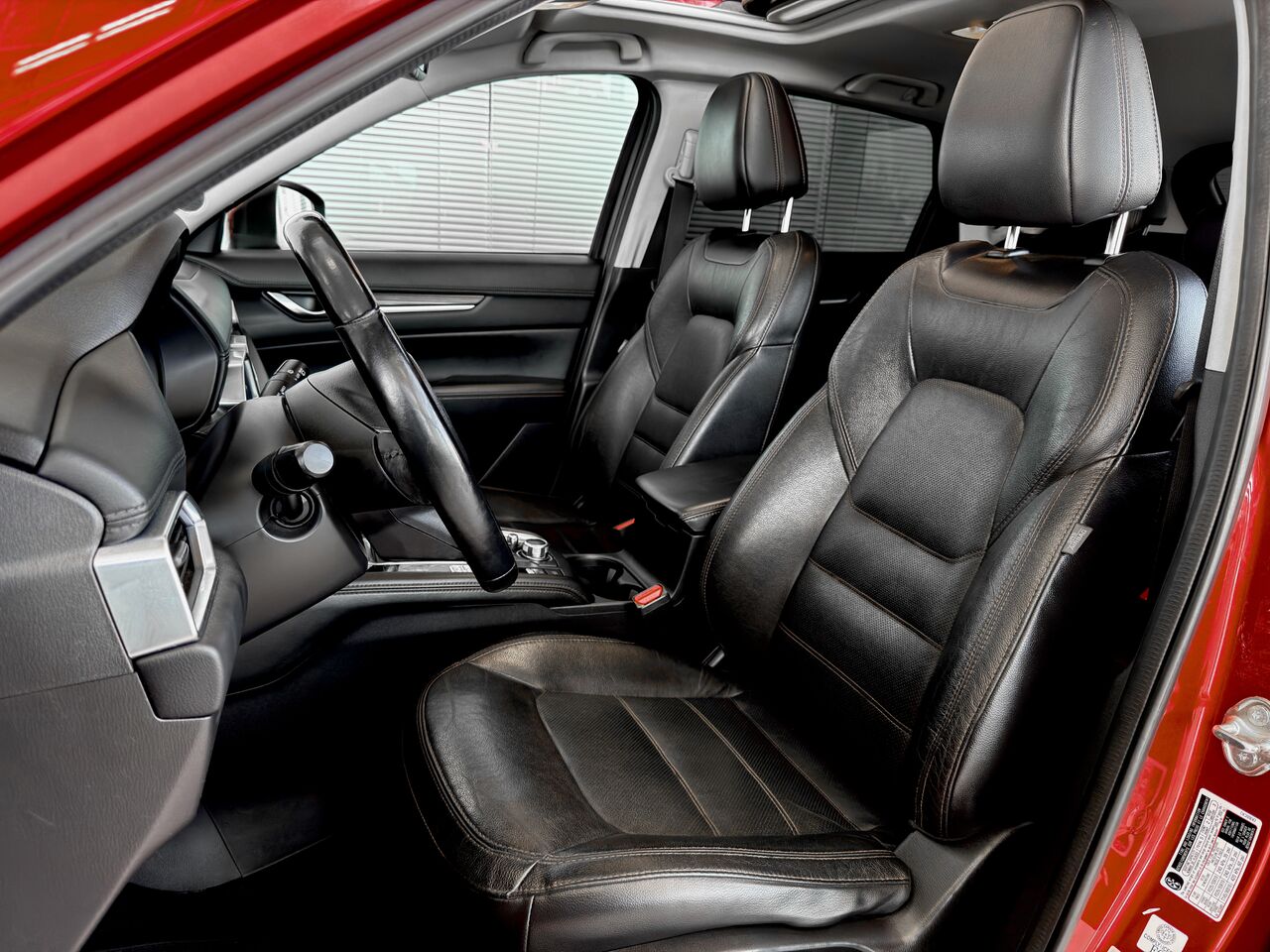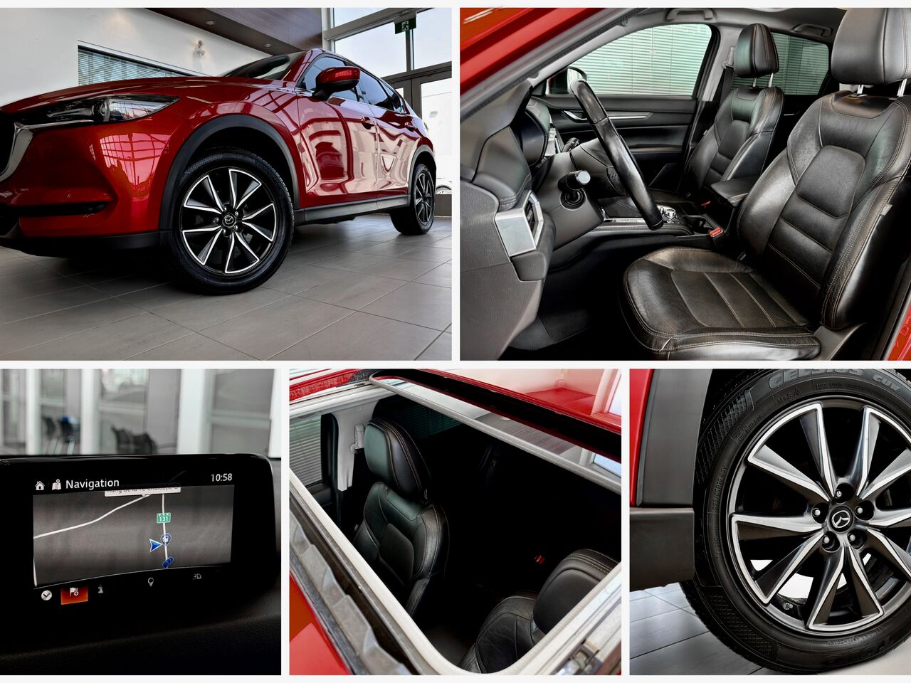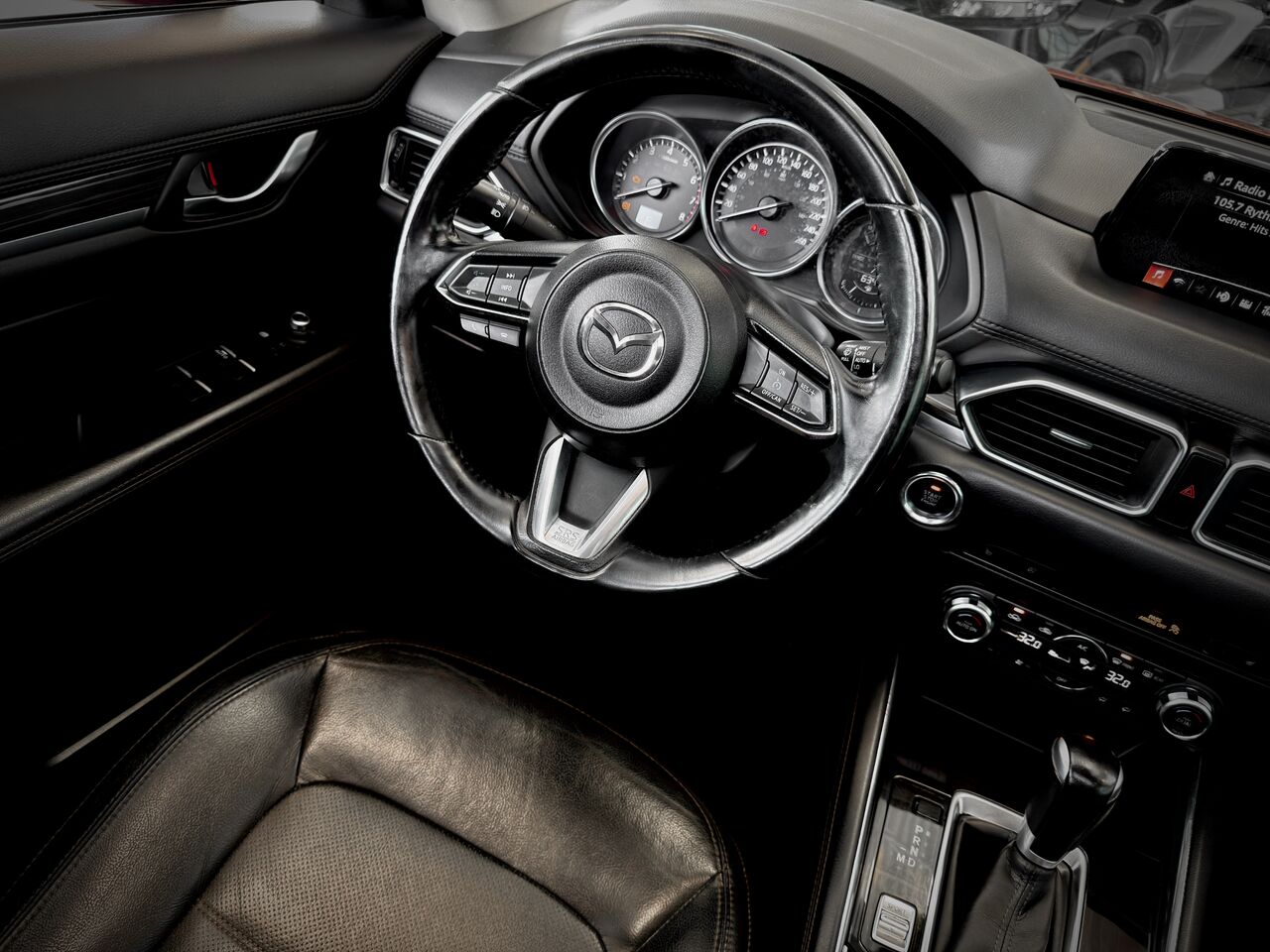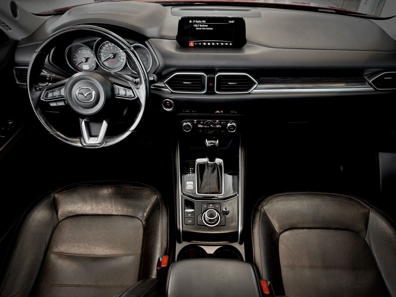 L'habitacle de ce Mazda CX-5 GT est un véritable sanctuaire de confort. Vous profiterez de sièges en cuir haut de gamme et d'un toit ouvrant qui inonde l'espace de clarté, tandis que le volant chauffant et la climatisation automatique bizone assurent votre bien-être lors des matins plus frais.