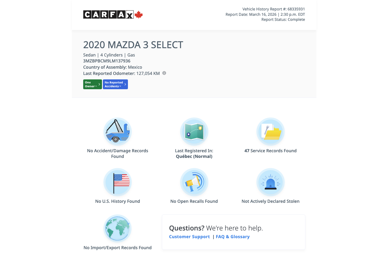 Prenez le contrôle de la route avec une berline qui allie style dynamique et sécurité rassurante. Cette Mazda 3 GS 2020 est le choix parfait pour ceux qui recherchent une conduite réactive et agréable au quotidien. Dotée de la transmission intégrale i-ACTIV, elle vous offre une adhérence optimale sur toutes les surfaces, vous permettant d'affronter les routes québécoises avec une tranquillité d'esprit absolue, peu importe la météo.