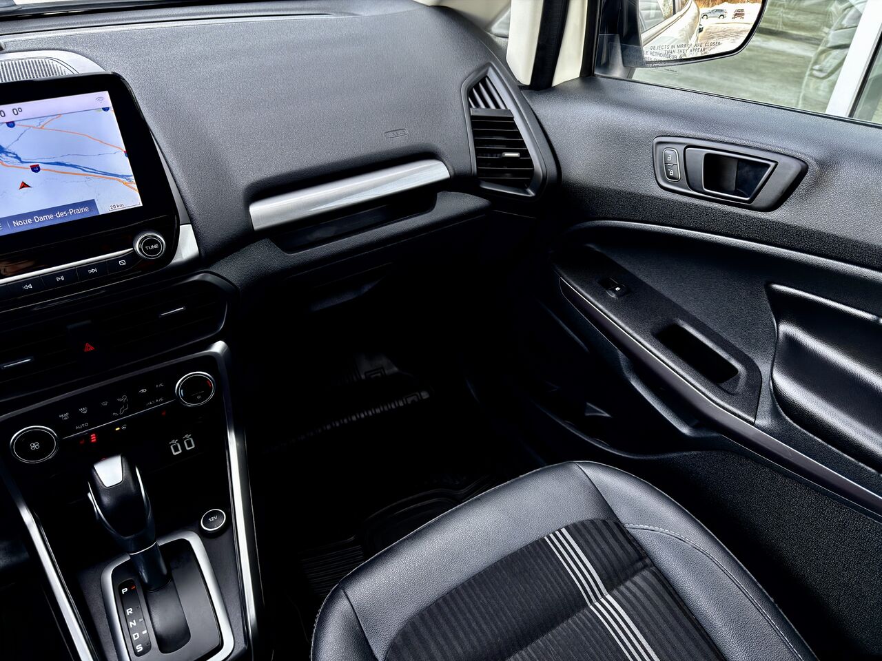 Partez à la conquête de la ville et de la route avec ce Ford EcoSport SES 2021 blanc. Ce VUS sous-compact très maniable est animé par un moteur 4 cylindres de 2,0 L développant 166 chevaux.
