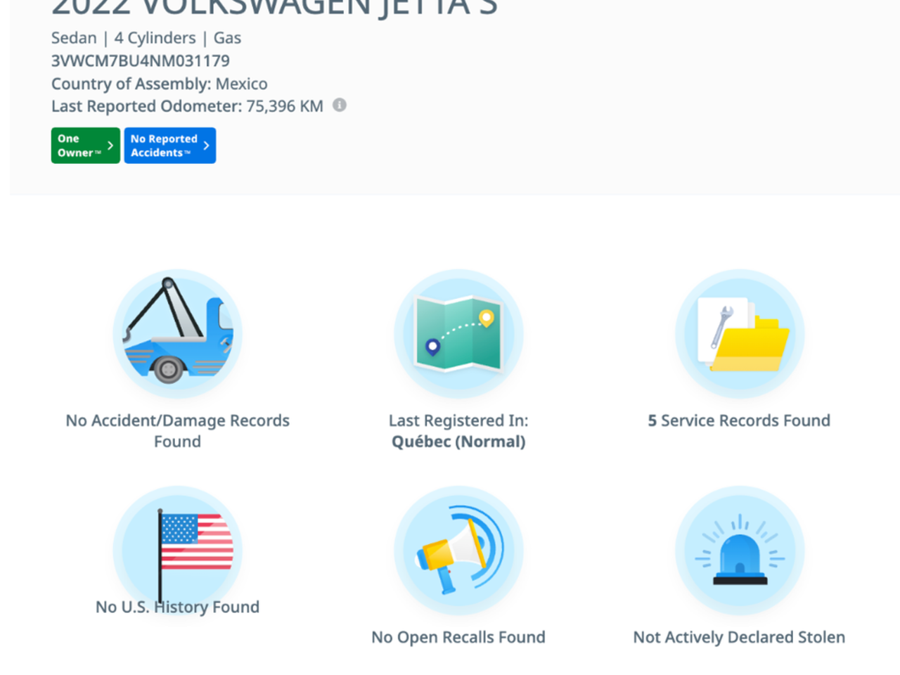 Volkswagen Jetta Trendline 2022 – L’élégance pratique au quotidien! Voici la Volkswagen Jetta Trendline 2022 en argent, avec 75 398 km au compteur, une boîte automatique 8 rapports et un moteur 1.5 litre turbo développant 158 chevaux, pour des trajets fluides et écoénergétiques grâce au mode Eco et au système Stop-Start. Sa traction avant et son différentiel à glissement limité assisté au freinage assurent une tenue de route stable en toute saison. L’habitacle mise sur le confort et la simplicité avec sa sellerie en tissu, sa climatisation manuelle, ses accents métalliques et piano black, et un espace optimisé par des appuis-tête ajustables et un accoudoir central avant. La technologie embarquée inclut un écran tactile de 6,5 pouces, le Bluetooth, la compatibilité Apple CarPlay et Android Auto, ainsi qu’un système audio à 4 haut-parleurs. Côté sécurité, la Jetta veille sur vous avec le Front Assist (freinage d’urgence autonome), la surveillance des angles morts, l’alerte de circulation transversale arrière, le Pedestrian Monitoring et la caméra de recul. Les phares à LED avec allumage automatique complètent le tout. Avec son style raffiné, ses jantes en alliage de 16 pouces, sa calandre noire aux accents chromés et sa silhouette soignée, elle sait rester chic tout en étant pratique. C'est le temps de se gâter, venez donc le chercher!!! A votre service depuis plus de 35 ans. Au groupe St-jean, nous avons une vaste gamme de véhicules d'occasion. Venez-nous rencontrer pour faire un essai routier. Nous rachetons votre véhicule d'échange peu importe la marque. Financement sur place Toutes nos voitures sont inspectées et esthétiquement prêtes pour vous. Préparées par nos professionnels certifiés. Bien que nous ayons pris toutes les mesures raisonnables pour nous assurer de la précision des renseignements fournis, nous ne sommes pas responsables de toute erreur ou omission. Veuillez contre-vérifier les renseignements auprès d’un représentant.