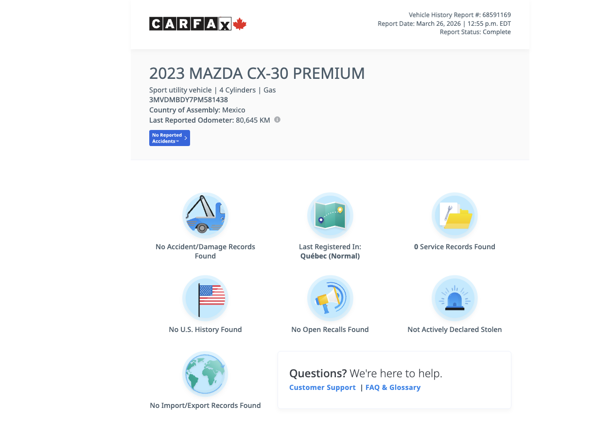 À l'intérieur de ce superbe Mazda CX-30 GT Turbo 2023, le luxe s'invite à chaque déplacement. Prenez place dans des sièges en cuir véritable, chauffants à l'avant, avec une fonction de mémorisation pour le conducteur. Le volant chauffant en cuir ajoute une touche de chaleur indispensable lors des matins frais. L'habitacle est pensé pour votre bien-être, incluant une climatisation automatique à deux zones et une visualisation tête haute pour garder les yeux rivés sur la route en tout confort.