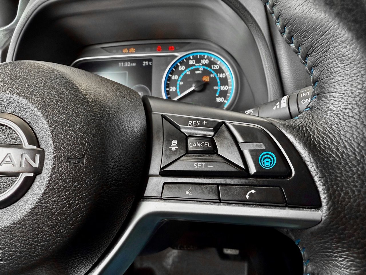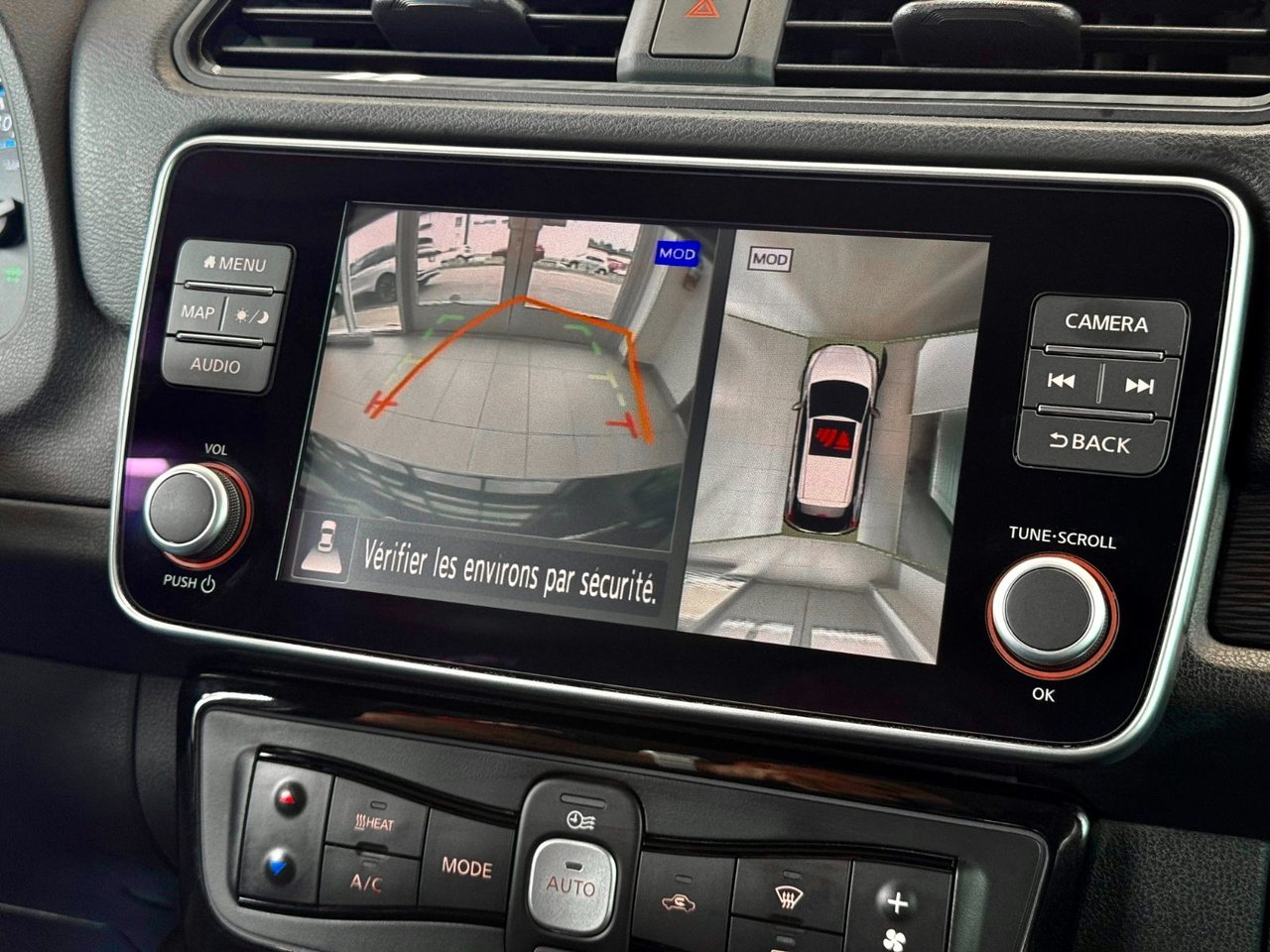 • Services NissanConnect EV alimentés par SiriusXM -comprend : témoin d'état de charge de la batterie, lancement de la séquence de charge, mise en marche du système CVCA, alerte automatique en cas d'impact, appels d'urgence, repérage du véhicule en cas de vol, téléservices incluant verrouillage et déverrouillage des portes, fonction d'activation du klaxon et d'allumage des feux à distance, alertes personnalisables dont l'alerte de zone limite, de service de voiturier, de couvre-feu et de limite de vitesse
