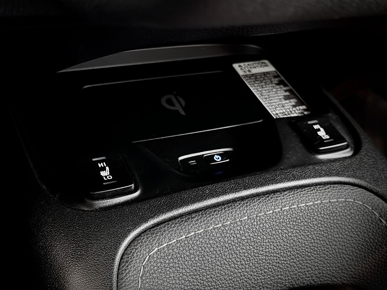 Console au plancher pleine grandeur avec compartiment de rangement couvert et 1 prise de courant de 12 V c.c.