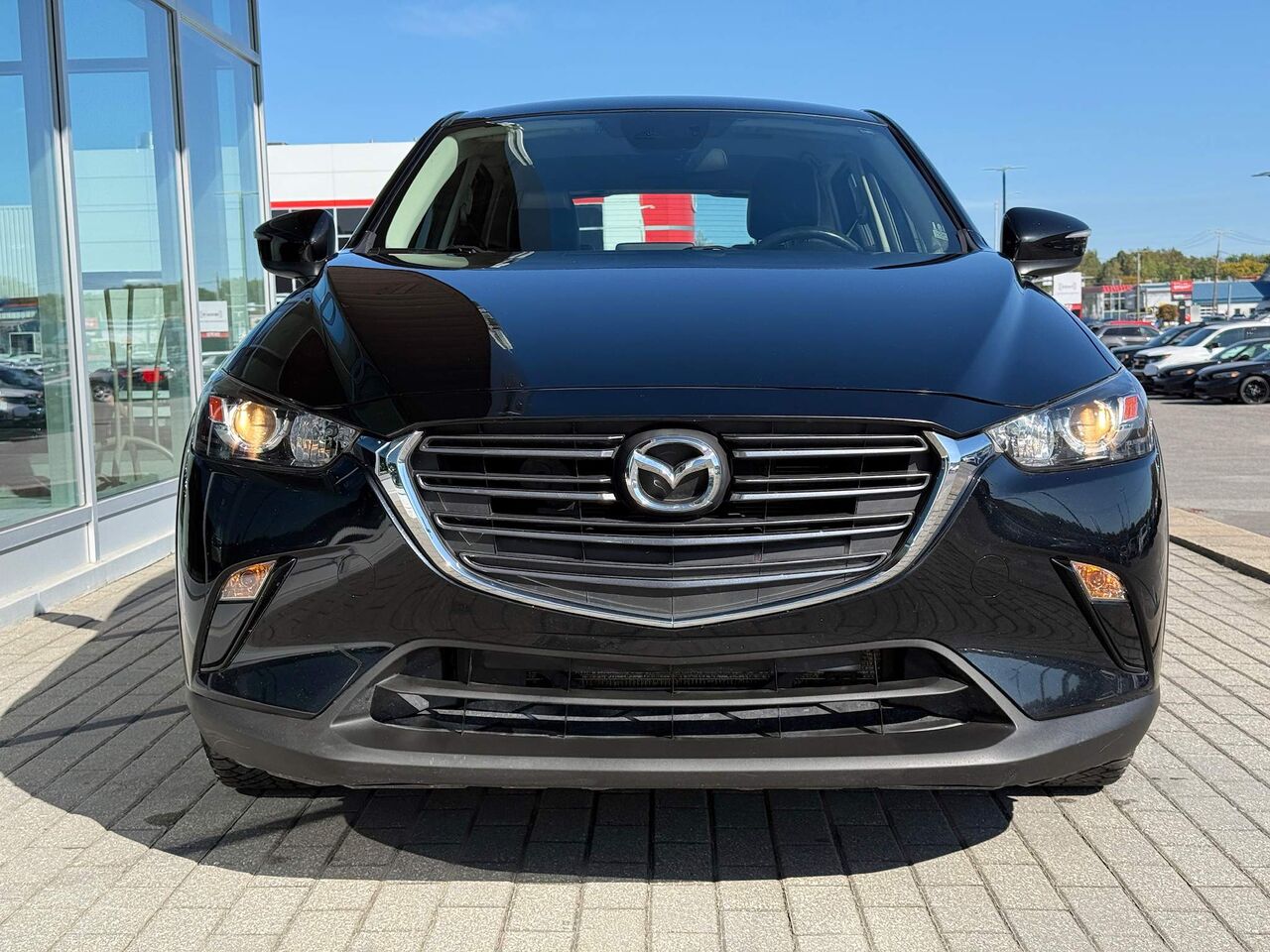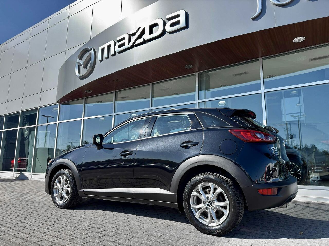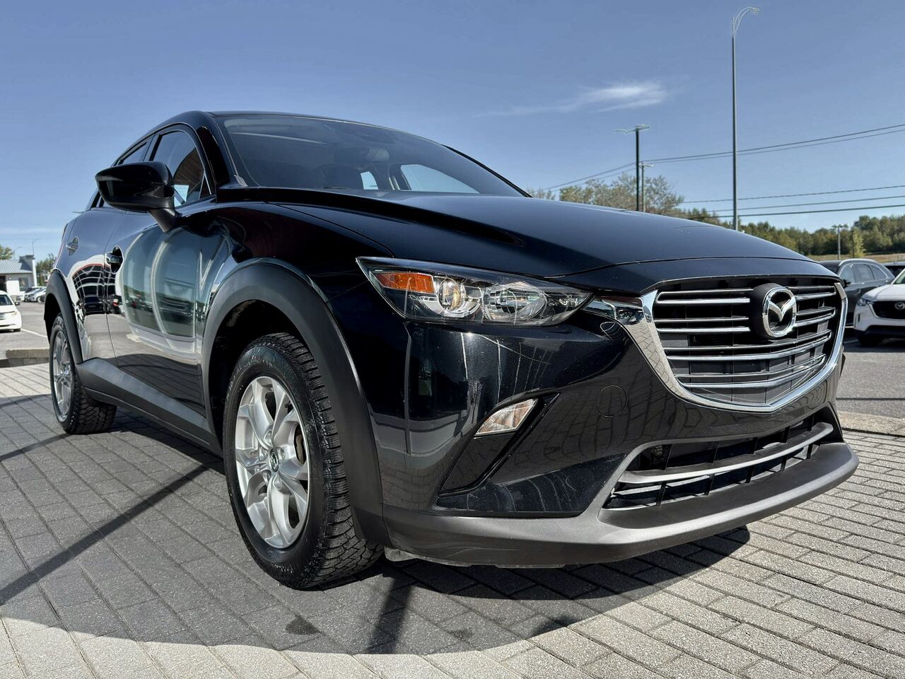 Il n’est pas fréquent de croiser un CX-3 en noir intégral et cela lui confère immédiatement une allure racée. Cette finition monochrome souligne les lignes tendues, les phares fins et l’attitude athlétique du véhicule : un petit SUV qui a du caractère sans en faire trop.