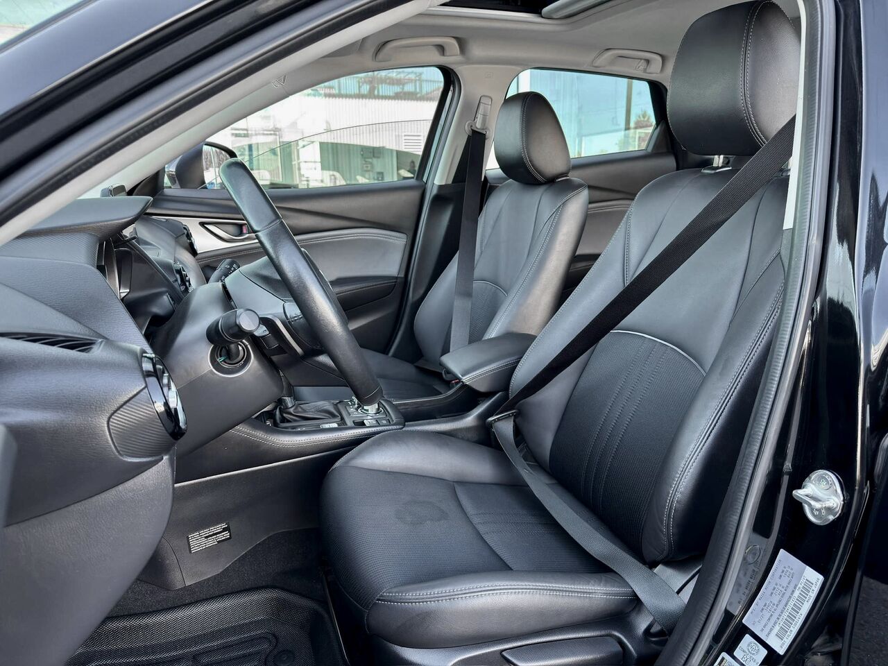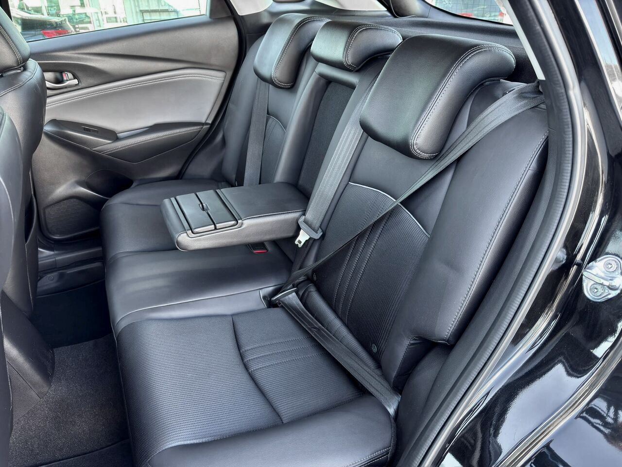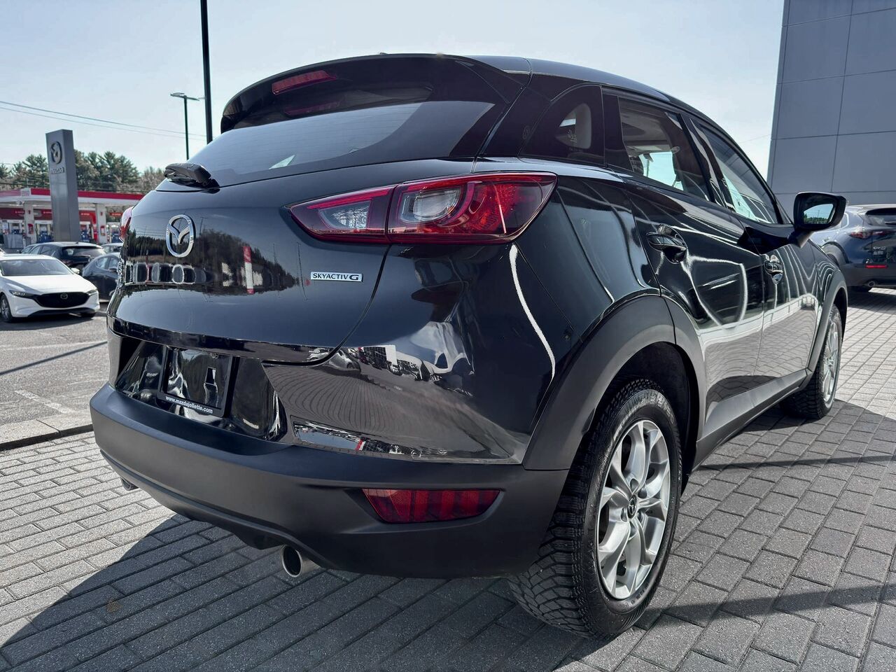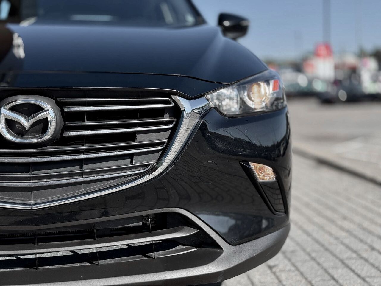 Il n’est pas fréquent de croiser un CX-3 en noir intégral et cela lui confère immédiatement une allure racée. Cette finition monochrome souligne les lignes tendues, les phares fins et l’attitude athlétique du véhicule : un petit SUV qui a du caractère sans en faire trop.