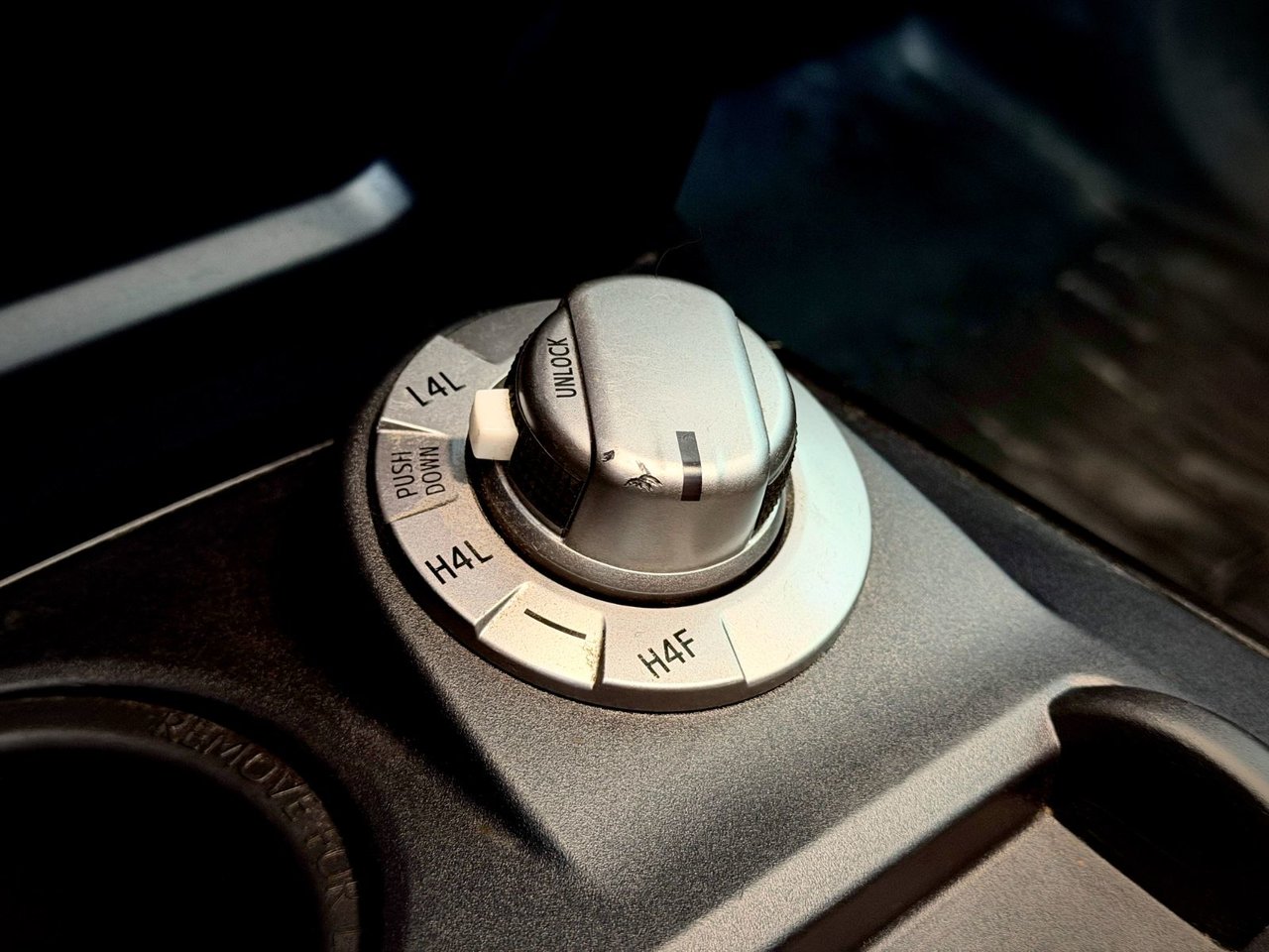 Pneu de secours pleine grandeur rangé au soubassement avec manivelle