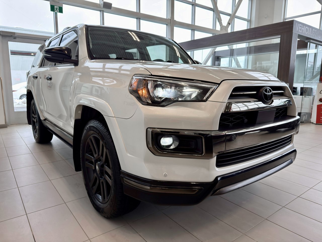 Le VUS légendaire, en habit de soirée. Toyota 4Runner Nightshade 2021, 117 000 km Nous venons de recevoir en échange un VUS qui ne laisse personne indifférent. Ce Toyota 4Runner Nightshade 2021 est le mélange parfait entre une robustesse légendaire et un luxe ténébreux. Avec 117 000 km, il est prêt pour de nouvelles aventures. La version Nightshade 7 places est le summum. L'habitacle vous accueille avec un cuir luxueux, des sièges avant chauffants ET ventilés, et un siège conducteur à mémoire. Le toit ouvrant électrique et la 3e rangée de sièges offrent polyvalence et confort. Sous le capot, le puissant V6 de 4,0 L (270 ch) est jumelé à un système 4x4 redoutable et à la suspension sport X-REAS. C'est une machine conçue pour durer et pour affronter toutes les conditions. L'expérience est rehaussée par la chaîne audio haut de gamme JBL à 15 haut-parleurs, le système de navigation sur écran de 8 pouces, et la connectivité Apple CarPlay/Android Auto. Conduisez l'esprit tranquille grâce à la suite Toyota Safety Sense P (régulateur de vitesse adaptatif), la surveillance des angles morts (BSM) et l'alerte de trafic transversal arrière. C'est une occasion rare de trouver un 4Runner aussi équipé sur notre terrain. C'est le temps de se gâter, venez donc le chercher!!! A votre service depuis plus de 35 ans. Au groupe St-jean, nous avons une vaste gamme de véhicules d'occasion. Venez-nous rencontrer pour faire un essai routier. Nous rachetons votre véhicule d'échange peu importe la marque. Financement sur place Toutes nos voitures sont inspectées et esthétiquement prêtes pour vous. Préparées par nos professionnels certifiés. Bien que nous ayons pris toutes les mesures raisonnables pour nous assurer de la précision des renseignements fournis, nous ne sommes pas responsables de toute erreur ou omission. Veuillez contre-vérifier les renseignements auprès d’un représentant. Selon les articles 159 et 160 de la loi sur la protection du consommateur, (1978, c.9) cette automobile fait partie de la catégorie ci-dessous et comporte une garantie de bon fonctionnement pour le temps ou le kilométrage indiqué ci-dessus, selon le premier terme atteint.